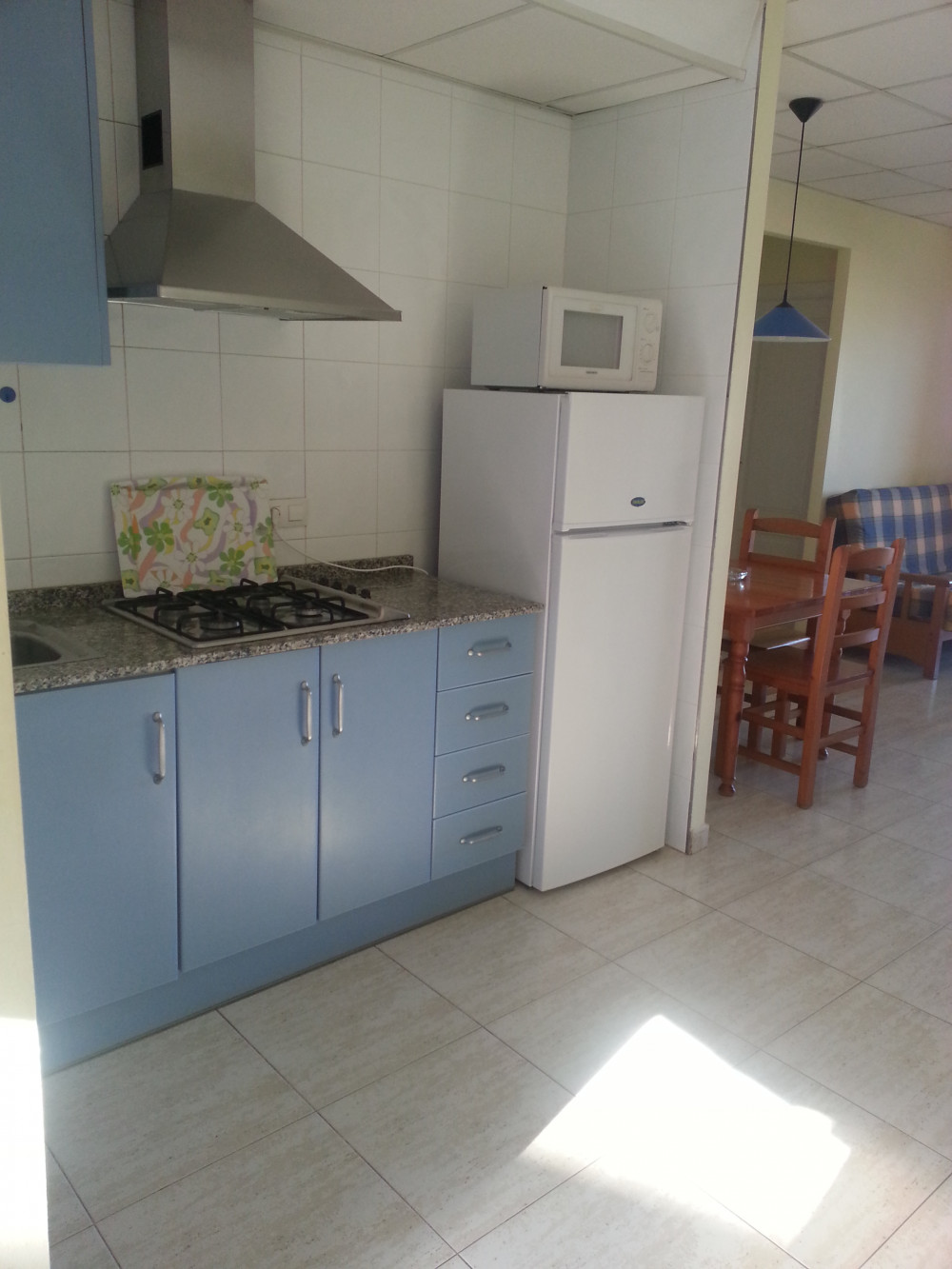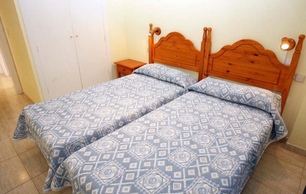 APARTAMENTOS: Los apartamentos constan de dos dormitorios con dos camas, salón comedor (con sofá cama para una persona), televisión, cocina equipada, cuarto de baño completo, lavadero y balcón. Equipados con juegos de cama, toallas, mantelería, trapos y menaje de cocina, cubertería, vajilla, cazuelas, frigorífico, lavadora, termo de gas central y microondas.